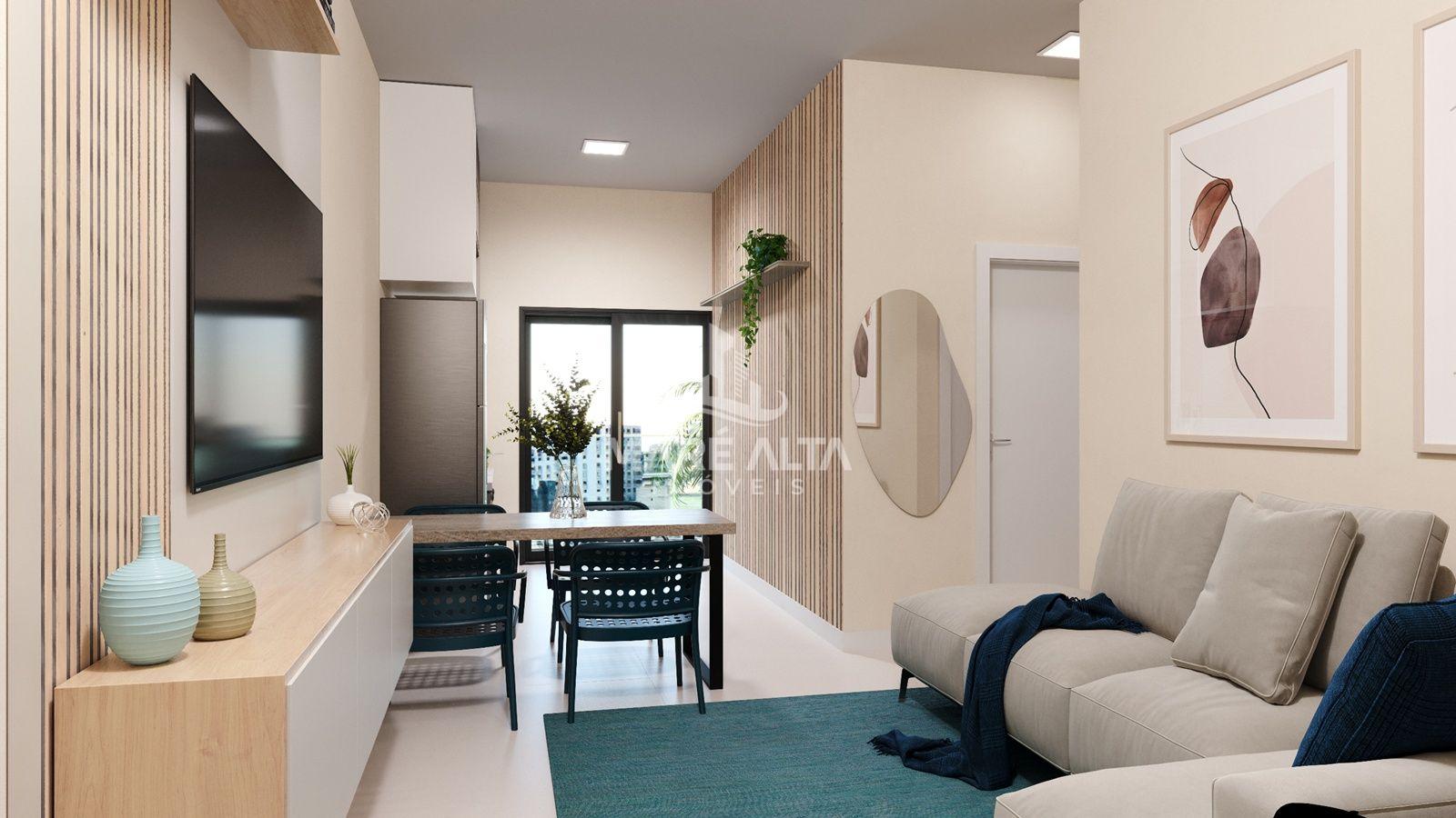 - Apartamento Tipo - 21: área privativa de 58,99m² e total de 86,72m², divididos em 02 dormitórios, sendo 01 suíte, sacada com churrasqueira e área de serviço, 01 banheiro social, sala de estar integrada com a sala de jantar e cozinha - Valor de R$ 599.000,00
