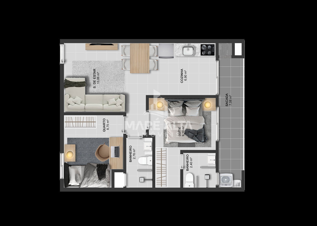 - Área Útil 58,99 m2