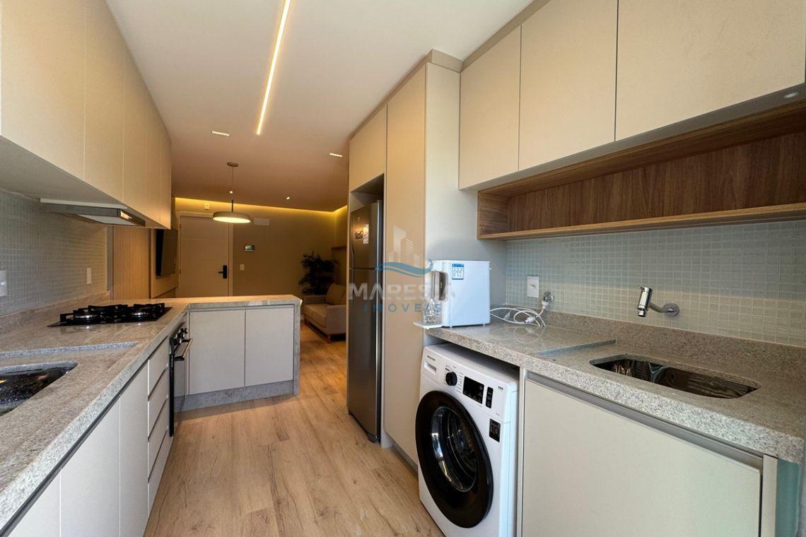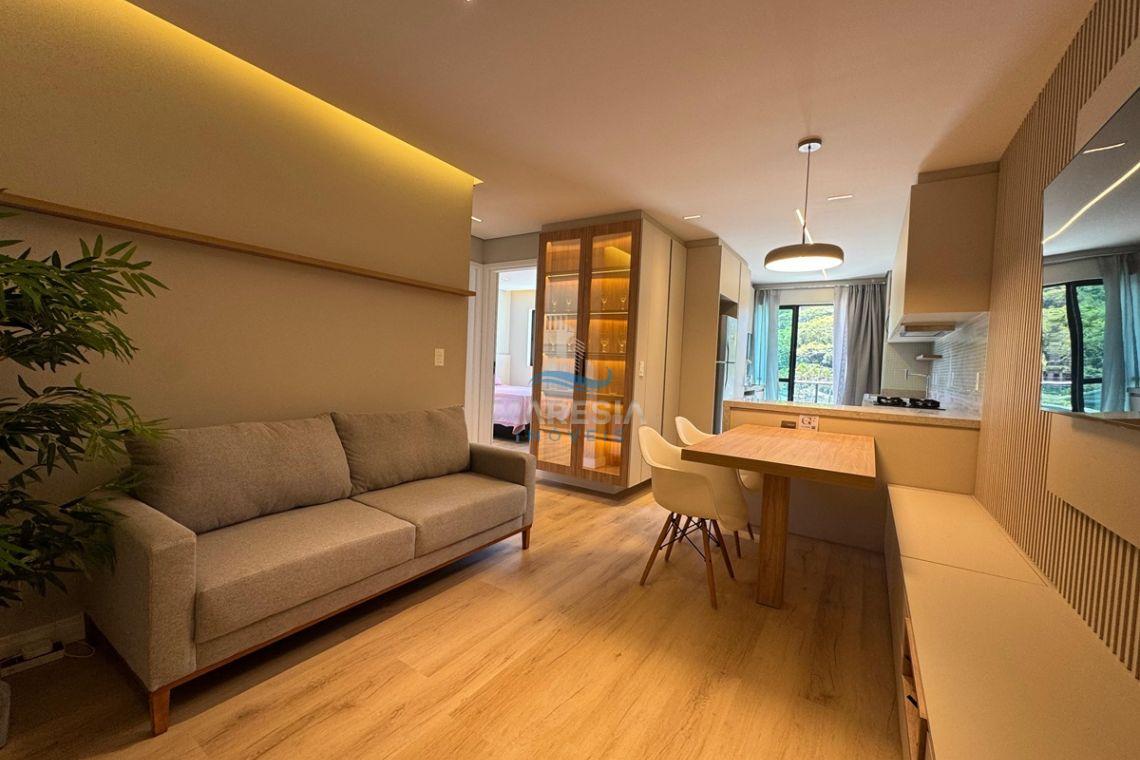 O apartamento possui área privativa de 46,44 m² e área total de 56,44 m², com ambientes bem planejados e acabamento moderno. O imóvel está totalmente decorado e conta com 02 dormitórios, sendo 01 suíte, além de 01 banheiro social, sala de estar e jantar integradas com a cozinha, proporcionando um ambiente funcional e aconchegante. A sacada com churrasqueira a carvão é um dos destaques do imóvel, ideal para momentos de lazer, e a unidade dispõe ainda de 01 vaga de garagem, garantindo praticidade no dia a dia.