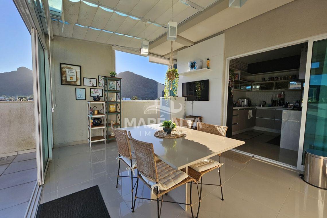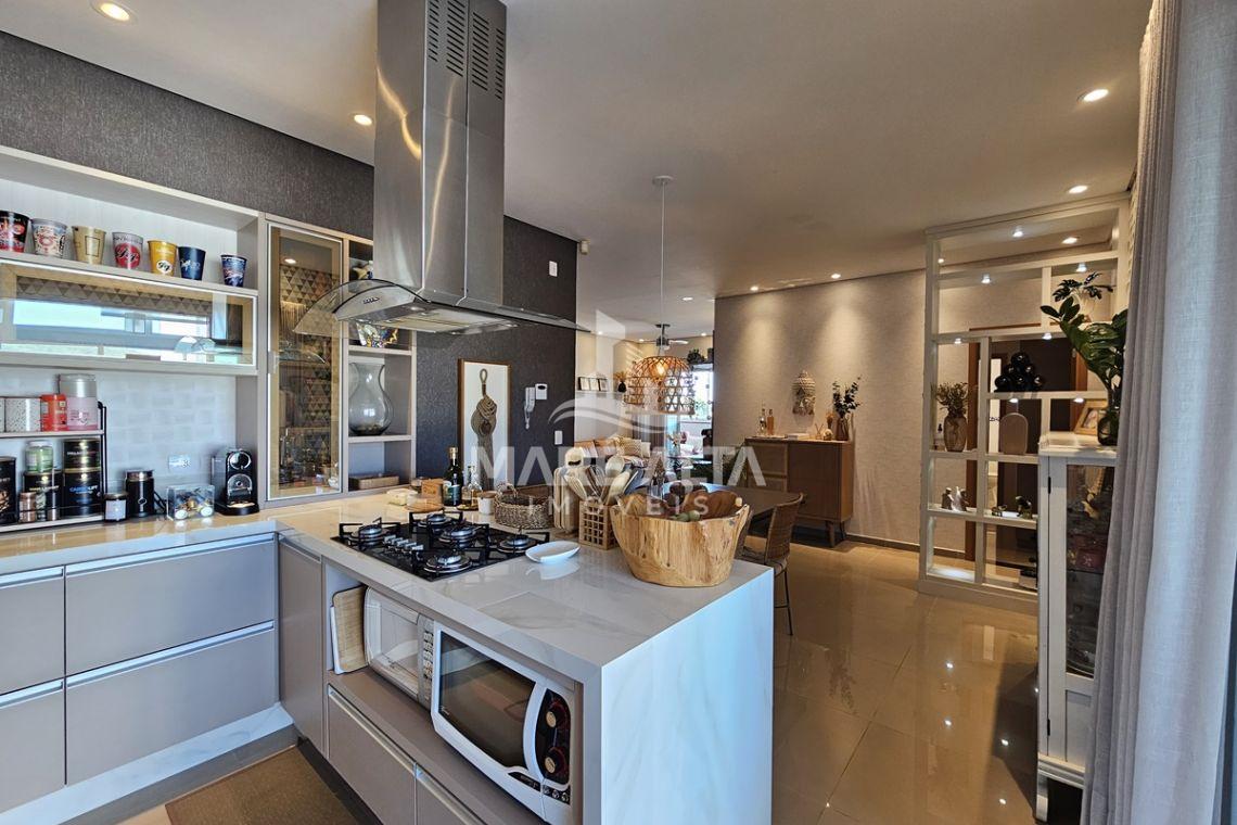 A cobertura linear possui 197 m² de área privativa, distribuída de forma inteligente para proporcionar conforto e funcionalidade em cada ambiente. O imóvel conta com 03 dormitórios, sendo 02 suítes, além de 02 banheiros sociais. A ampla sala de estar e jantar integrada à cozinha cria um ambiente moderno e acolhedor em conceito aberto.