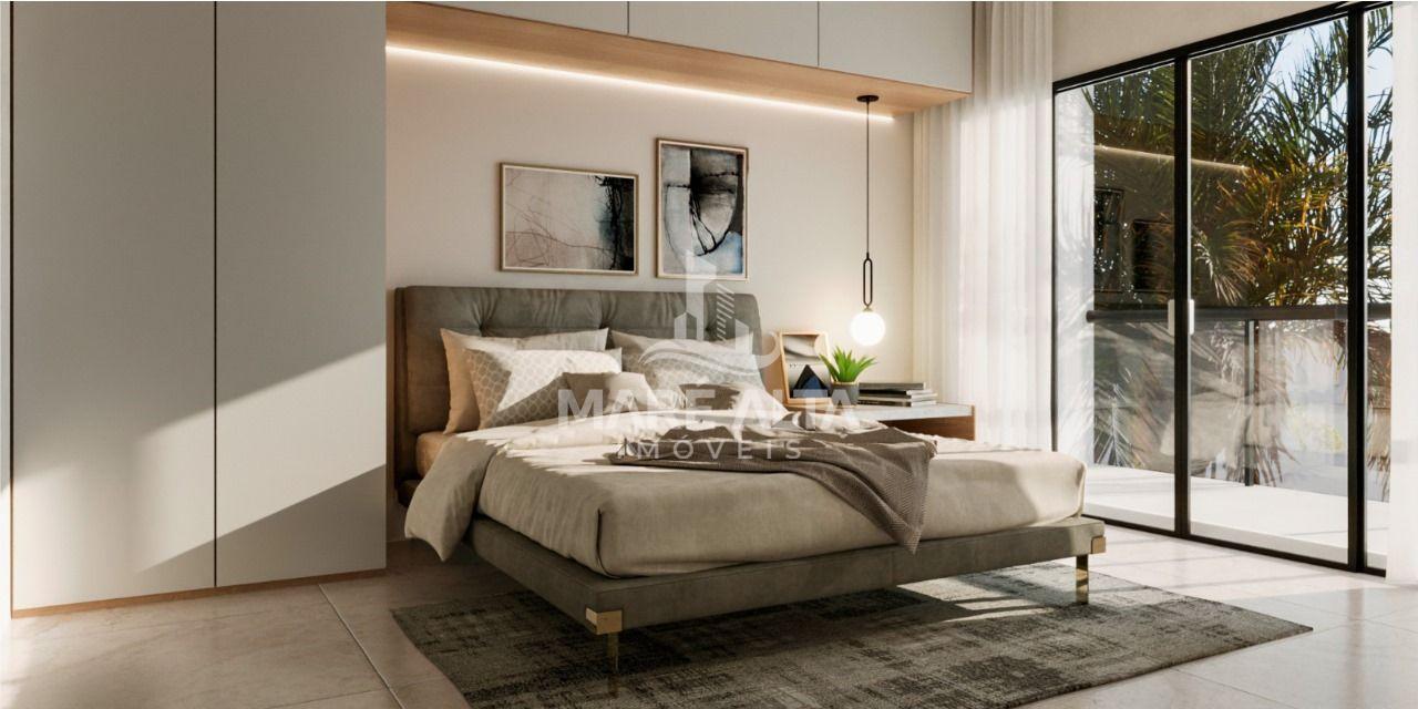 03 suítes com sacadas, sendo uma com banheira e banheiro Ele/ Ela, todas com veneziana monitorada integrada, sala e cozinha em conceito aberto com churrasqueira à carvão e ampla área de lazer com piscina.