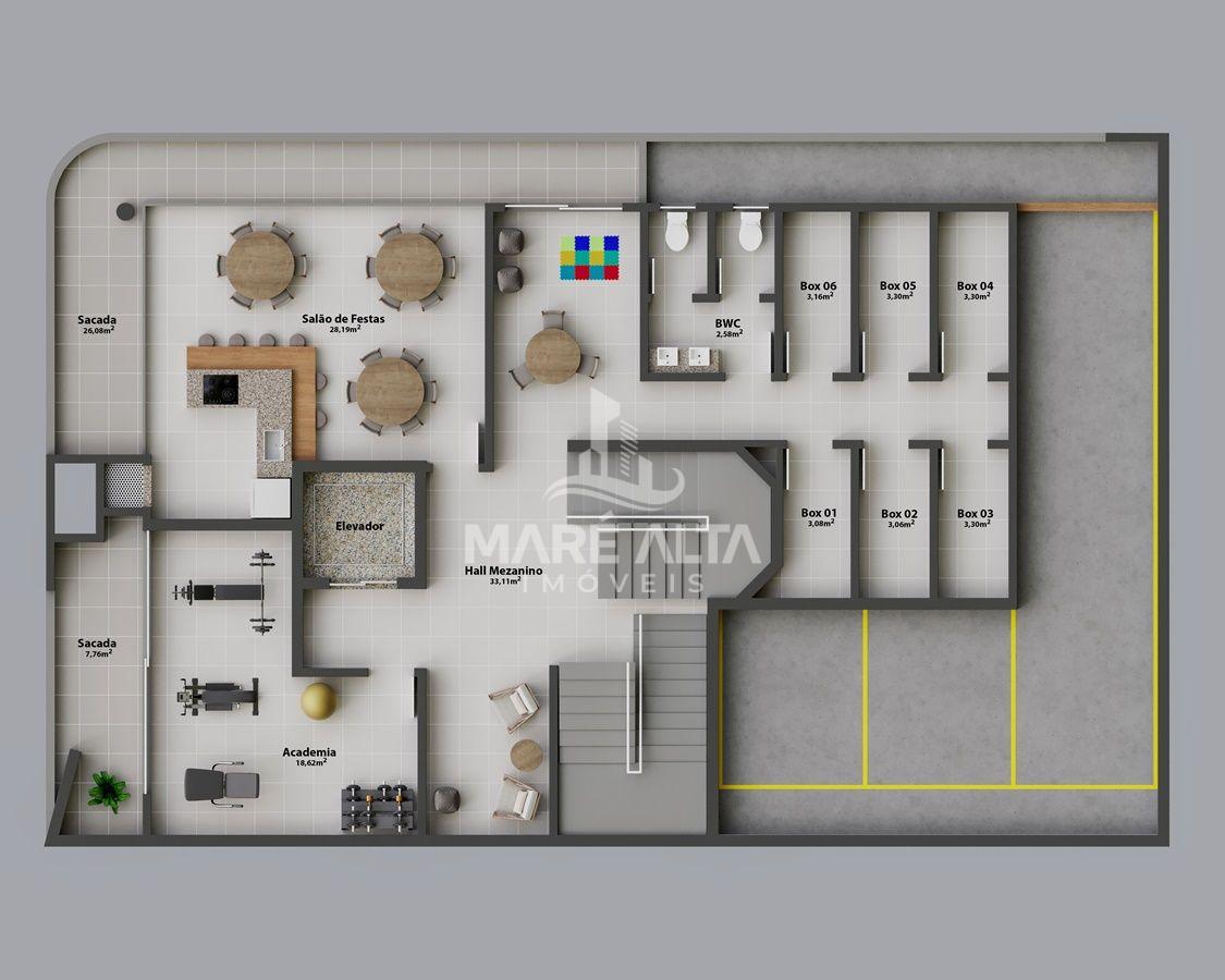 O prédio conta com unidades de 85,96 m² a 245,32 m² de área privativa.