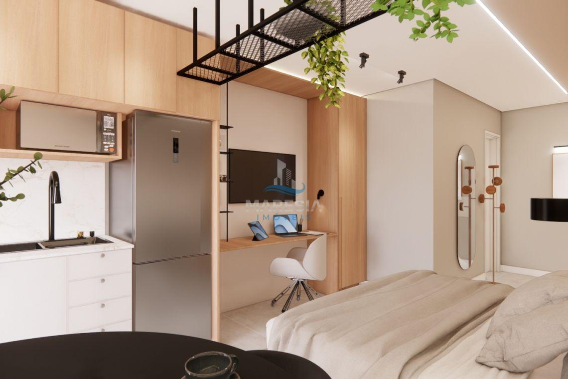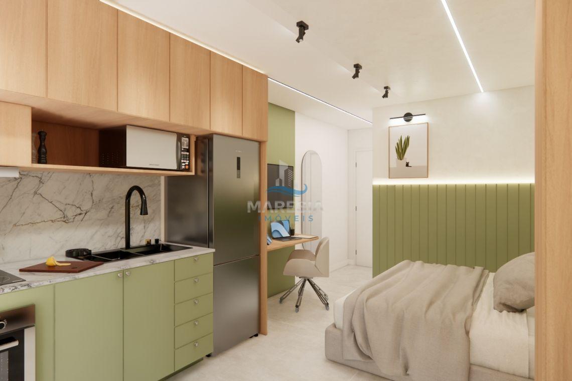 - Características das unidades – Studios: Com área privativa a partir de 28,00 m², possui sala para dois ambientes (cozinha e dormitório), sacada com churrasqueira, área de serviço, 01 banheiro social e 01 vaga de garagem privativa - Valores a partir de R$ 248.040,00
